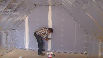 Dans 'Mon grenier de répétition', vous voyez comment un espace vide sous un toit incliné est transformé en un grenier de répétition musicale. Nous partirons avec un cloison.