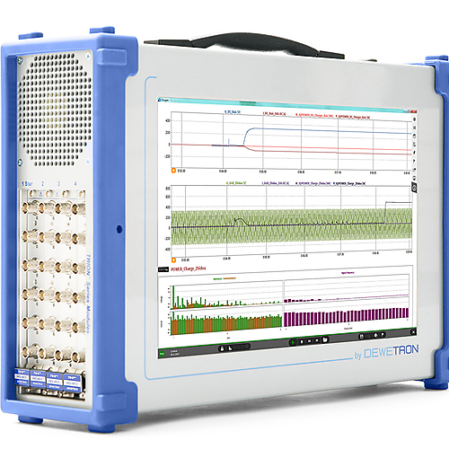Schrijver voor snelle signalen DEWE2-A4-L is modulair met 4-vrije plaatsen voor multi-kanaals (isolatie)versterkers voor 4 tot 32 ingangen.Uniek is 'de eenvoud van bediening' middels een multi-touch aanraakscherm om snel en eenvoudig alle kanalen in te stellen,bouw het scherm en direct beginnen met registratie. Alle ingangen worden continue synchroon gemeten of gebruik triggers om efficiënt te registreren. Sensoren/signalen: zoals spanning, stroom, ... en via de EPAD modules ook thermokoppels en andere statische signalen. Met DejaView data terug te kijken tijdens de registratie, middels intuïtieve gebaren zoals op de smartphone. Data printen of exporteren voor rapportage/analyse. Draagbaar & Robuust als vervanger voor de klassieke (transiënt) recorders. www.dewetron.com