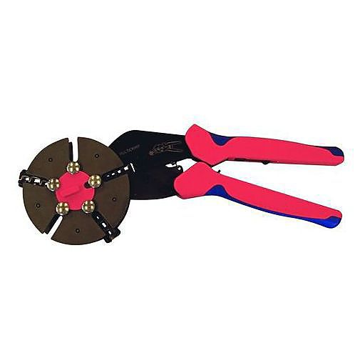 Multifunctionele sperkrimptang De multifunctionele sperkrimptang van Klemko (RS-MULTICRIMP3V, art.nr.: 900205) is geschikt voor het verwerken van on- en geïsoleerde kabelschoenen en adereindhulzen. Deze veelzijdige tang heeft een magazijn, voorzien van een riemclip, met daarin 3 soorten matrijzen. De installateur of monteur kan met deze tang de rood, blauw en geel geïsoleerde kabelschoenen, de ongeïsoleerde F-krimp kabelschoenen en adereindhulzen verwerken van 0,5 tot en met 6 mm². Deze mechanische tang heeft een eindevergrendeling en is voorzien van een automatische terugloop. De verwisselbare matrijzen zijn zonder gereedschap klik-en-klaar in de tang te plaatsen.