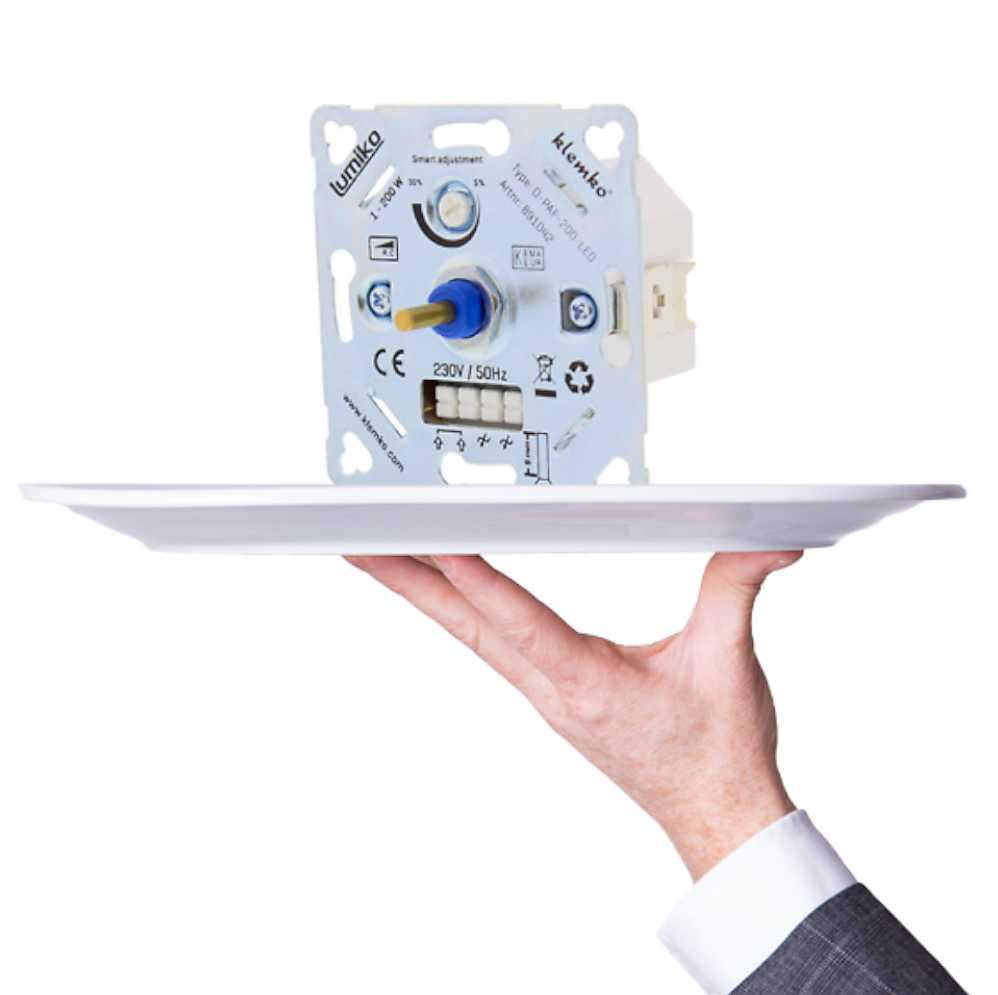 Universeel led dimmen Om de overstap naar led nog laagdrempeliger te maken, heeft Lumiko een dimmer ontwikkeld die vrijwel alle ledtypes dimt. Slimme software in de dimmer past zich aan de aangesloten led aan en dimt zo vrijwel alle leds met een vermogen van 1 tot 200W via faseafsnijding. Retrofit of professionele leds met driver: er is geen nuldraad nodig. De dimmer is af te werken met de meeste afdekmaterialen.