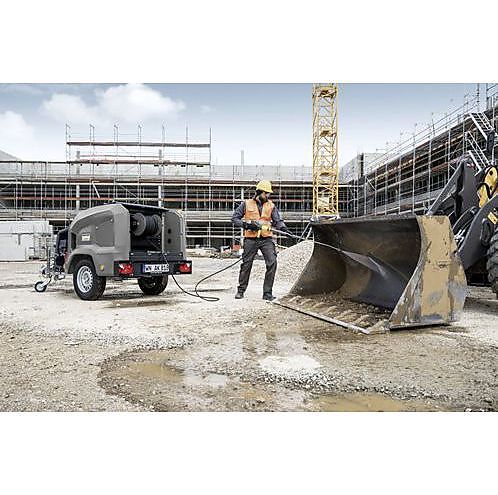 Mobiele hogedrukreiniger Duurzaam en flexibel Een watertank van 1000 liter, een krachtige diesel- of benzinemotor met slimme opties - Kärcher's nieuwe koudwater hogedruktrailer is dé oplossing voor mobiel en autonoom werk. De hogedrukreiniger laat minstens één uur onafgebroken gebruik toe, zonder de watertank bij te vullen. Dankzij de lage kogeldruk (75 kilogram) is er geen grote trekauto nodig. Met opties zoals impactbescherming voor de tank, een slanghaspel en een urenteller kan de hogedrukreiniger afgesteld worden op de specifieke behoeftes van de klant. Kenmerken: • Debiet tot 930 liter per uur en een druk tot 230 bar; • Motoren voldoen aan EU STAGE V-normen (geen aansluiting op netvoeding nodig); • Cab-versie voor stationair gebruik is uitgerust met heftrucksloffen voor transport; • Slanghaspel zorgt voor een groter gebruiksgemak (capaciteit voor 50 meter hogedrukslang); • Easy!Force Advanced hogedrukpistool biedt een ergonomische drukregeling; • Antivriessysteem;