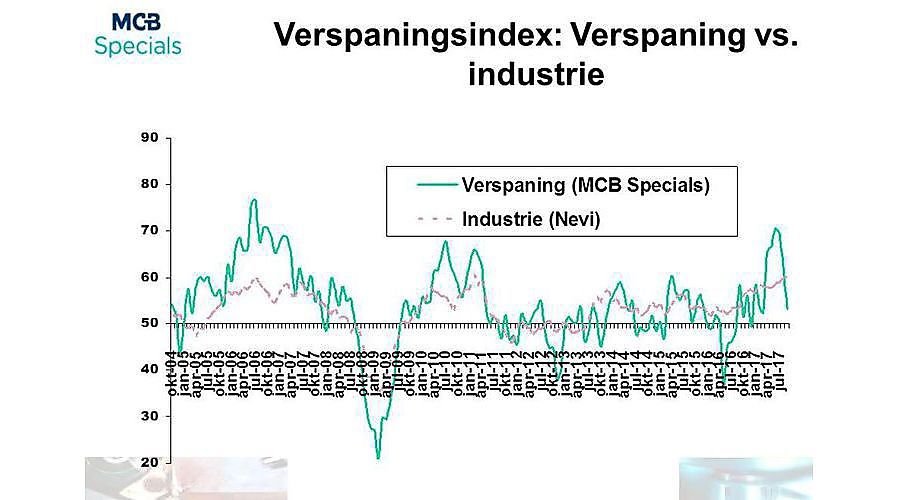 Stand van zaken in de verspaning Inkoopmanagers in september veel minder positief dan in augustus Uit de laatste meting van de MCB Specials Verspaningsindex blijkt dat de inkoopmanagers in de metaalbewerkende branche in september veel minder positief dan in augustus zijn over de groei in de branche: indexscore 53,3 tegenover 62,5. De sector ontwikkelde zich in september dan ook veel minder goed dan de totale Nederlandse industrie (60,0 - maandelijks gemeten door Nevi). Omdat een score hoger dan 50 'groei' betekent, spreken we echter ook in de verspaning (en industrie in het algemeen) over groei. In vergelijking met augustus stellen we vast dat de productie zich positiever ontwikkelt dan vorige maand, maar de orders blijven uit. De levertijden van de leveranciers zijn korter geworden, de voorraden van de eindproducten nemen flink af en over de werkgelegenheid denkt men vrijwel hetzelfde. De inkoopprijzen, geen onderdeel van de totale verspaningsindex, nemen flink af ten ...