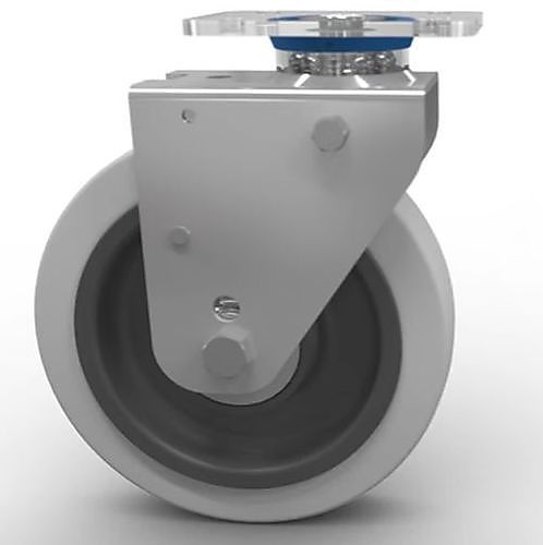 Castor zwenkwielen De veelzijdige reeks Castor voor zware lasten (tot 350 kg per wiel) bieden maximaal comfort, stabieler sturen, en een minimaal risico op verwondingen. Ze zijn ideaal voor toepassingen met AGV's (Automated Guided Vehicles). Wanneer een AGV de belaste kar opheft, worden de wielen dankzij een veermechanisme automatisch uitgelijnd met de kar, zodat ze tijdens de rit niet ongecontroleerd bewegen en de kar makkelijker door liften, deuren en andere smalle doorgangen kan. Kenmerken: • richtingsblokkeersysteem onder veerdruk • past op alle AGV's • remsysteem volgens balpenprincipe • rvs componenten en afgedichte kogellagers (vlotte reiniging, beschermd tegen spatten en detergenten)