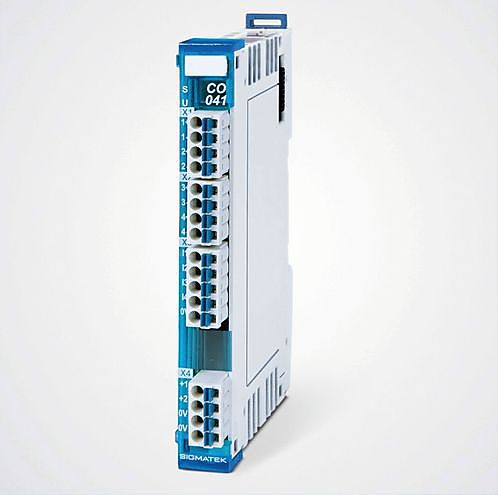 Uiterst precieze klepbesturing Exacte dosering van vloeibare toepassingen De CO 041 S-Dias module biedt vier stroomgestuurde PWM outputs, eveneens inzetbaar als pulssignaaluitgang (bijv. voor regeling van micro-dosering in kleppen). Hij kan eveneens functioneren zonder CPU, waarbij de vier digitale ingangen (TTL-signaal) gebruikt worden voor de directe besturing van de betreffende uitgangen. • 4 digitale +5 V ingangen • bestuurt tot vier kleppen • voedingsspanning: 18-55 V • bedrijfsspanning: tot 1 A • inschakelstroom: tot 3,5 A • inschakel- en continu stroom aan te passen (juist en dynamisch reagerend ventiel) • periodefrequentie bedrijfsspanning: 30 Hz-20 kHz. • als puls signaaluitgang (push-pull): tot 1 A per kanaal • minimale turn