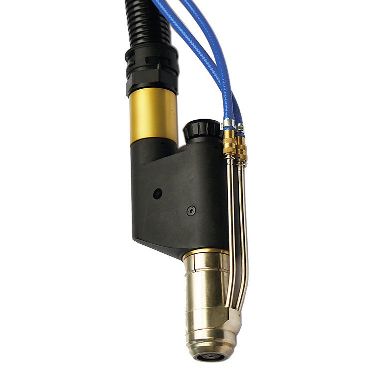 PlasmaT 410M Fidur De veelzijdige tool voor het plasmalassen maakt het mogelijk om twee laspoeders te verwerken - zowel voorgemengd als afzonderlijk in een bepaalde sequentie. Met diezelfde toorts is het eveneens mogelijk om een afzonderlijk laspoeder voor of achter de boog te brengen, om zo de laspenetratie en -verdunning evenals de optimale coatingstructuur te bepalen. De constante aanbreng van lasmateriaal verzekert een gelijmatige verdeling van de coating. De efficiƫnte koeling met twee circuits laat toe om te werken met een stroomlading tot 400 A aan een cyclus van 100%. Het gebruiksgemak is hoog: werken met de toorts gebeurt met een touch display. Verschillende gebruikersniveaus laten ook toe om te kiezen hoeveel invloed de lasparameters en datamanagement hebben.