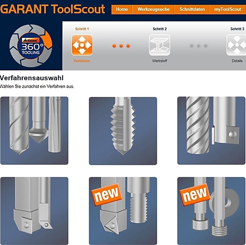 Uitbreiding GARANT ToolScout De Hoffmann Group heeft haar digitale service GARANT ToolScout uitgebreid met twee nieuwe services. In de nieuwe KaliberScout kunnen de gebruikers per direct snel en betrouwbaar de voor hun opdracht geschikte testapparatuur identificeren. De nieuwe ThreadScout maakt de keuze uit draadtap- en freesgereedschap inclusief bewerkingsstrategie resp. CNC-programmering erg gemakkelijk. Daarnaast werd de FreesScout met dynamisch TPC-hoekfrezen uitgebreid. De klanten kunnen daardoor nog sneller het voor hen geschikte product identificeren en bestellen. De ThreadScout helpt bij het kiezen van gereedschap voor draadtappen en schroefdraadfrezen. Met de nieuwe KaliberScout identificeren de gebruikers snel het geschikte meetapparaat.
