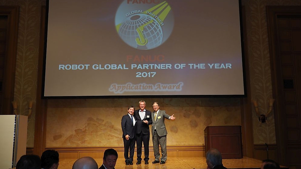 robojob haalt FANUC award binnen Met de award zet FANUC vooruitstrevende bedrijven in de kijker RoboJob heeft de Application Award van FANUC binnengehaald. Deze Award ontving RoboJob dankzij haar werk in de ontwikkeling van laagdrempelige standaardoplossingen voor de automatisering van CNC-machines. Eind 2017 organiseerde FANUC voor de tweede keer haar Award Ceremony in Japan. FANUC reikt de Awards elke twee jaar uit, gelijktijdig met de wereldbeurs iREX, de International Robot Exhibition die ook in Japan plaatsvindt. Met deze Awards wil FANUC vooruitstrevende bedrijven in de kijker zetten. Dit jaar mocht het Belgische RoboJob de hoofdprijs in ontvangst nemen. “Dit is een enorme erkenning voor het hard werk wat heel ons team de afgelopen jaren verzet heeft,” vertelt een fiere CEO Helmut De Roovere.