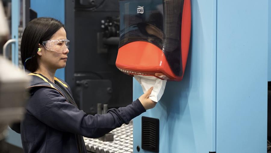 Tork Performance® dispensers zijn binnen handbereik van machinewerkers te plaatsen en helpen bedrijven slimmer te werken met een betere hygiëne die tijd bespaart, duurzamer is en de productiviteit continu verbetert.