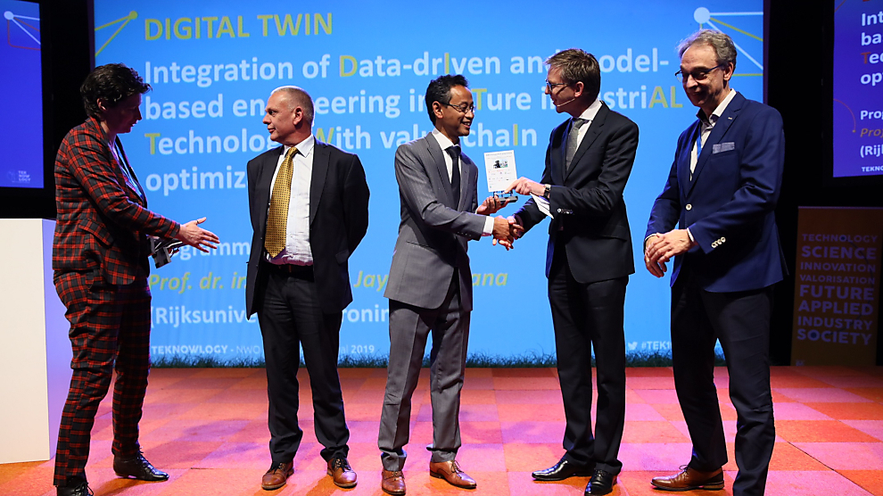 NWO kent vier miljoen euro toe aan DIGITAL TWIN programma Slimmer systeem door digitale tweeling Het vijfjarige programma DIGITAL TWIN onder leiding van de Rijksuniversiteit Groningen kan van start nu NWO vanuit het programma Perspectief een subsidie van 4 miljoen euro heeft toegekend. Deelnemende bedrijven voegen nog eens 1,6 miljoen euro toe. Binnen het DIGITAL TWIN programma werken zes universiteiten, RUG, TU/e, TU Delft, Twente, Leiden en Tilburg samen met twaalf industriële partners en kennisorganisaties vanuit de hightech-, metaal- en composietindustrie, zoals ASML, VDL Groep, Tata Steel, Philips en Océ. Programmaleider prof. dr. ir. Bayu Jayawardhana (RUG - Faculty of Science and Engineering) en co-programmaleider prof. dr. Jan Post (Philips/RUG) kunnen hiermee nu 19 onderzoekers aanstellen. Hightech systemen worden steeds complexer en steeds moeilijker te ontwerpen, produceren en onderhouden. Het DIGITAL TWIN programma ontwikkelt methoden om van dit soort ...