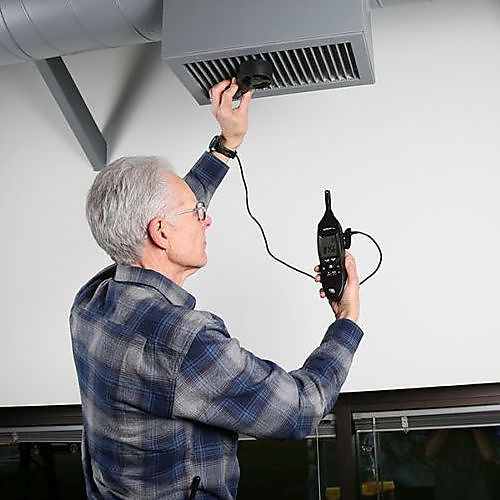 Omgevingsmeter voor HVAC/R Nauwkeurige metingen van de luchtsnelheid, temperatuur en relatieve vochtigheid De multifunctionele EM54 omgevingsmeter is ideaal voor de inspectie van luchtkanalen, elektromotoren, thermische apparatuur en andere systeemonderdelen in woningen, bedrijfspanden en fabrieken. De gebruiksvriendelijke meter van hoge kwaliteit laat gebruikers snel en nauwkeurig symptomen opsporen van verstopte filters, lekkages in luchtkanalen en kortsluitingen in HVAC-systemen. De FLIR EM54 is uitgerust met: • een externe anemometer met schoeprad; • een ingebouwde hygrometer; • een bijgeleverde type-K contacttemperatuurprobe; • een eenvoudig af te lezen multifunctioneel display; • een MIN-MAX-AVG opnamefunctie; • een instelbare timer voor automatische uitschakeling; en • een beperkte garantie van drie jaar. Ga voor meer informatie naar FLIR.eu/EM54